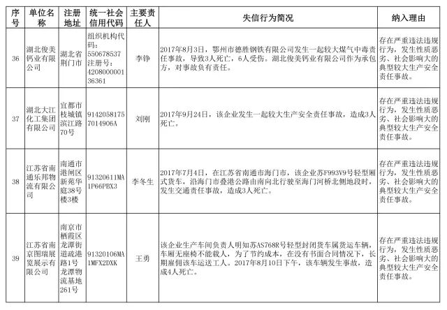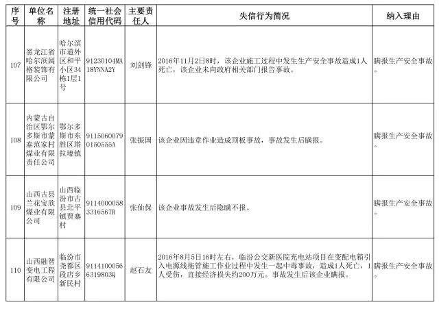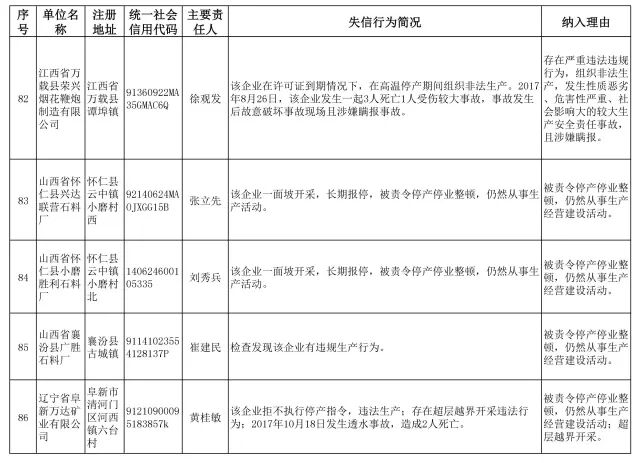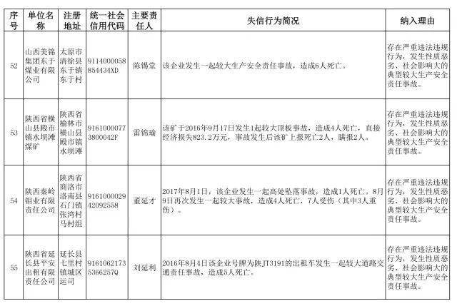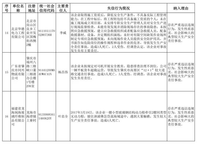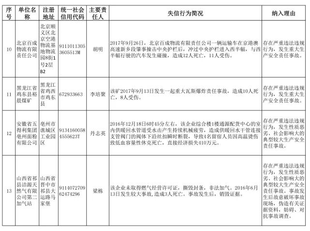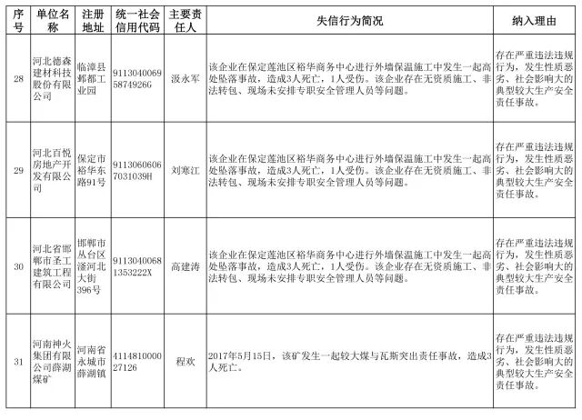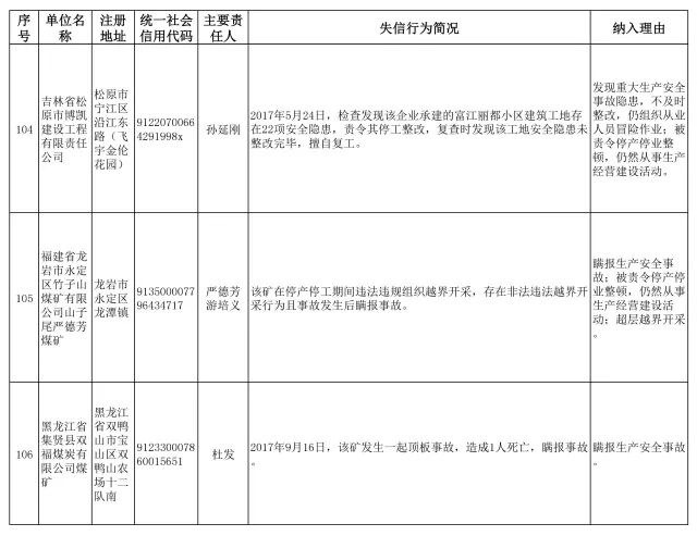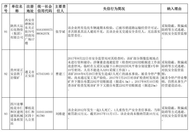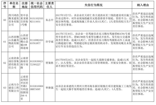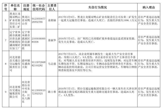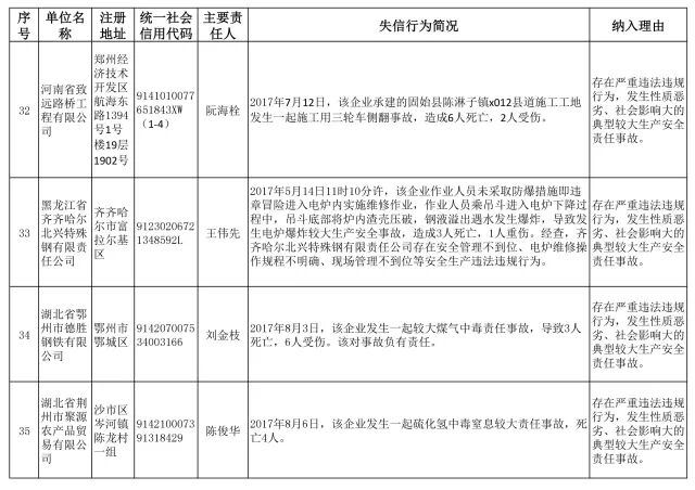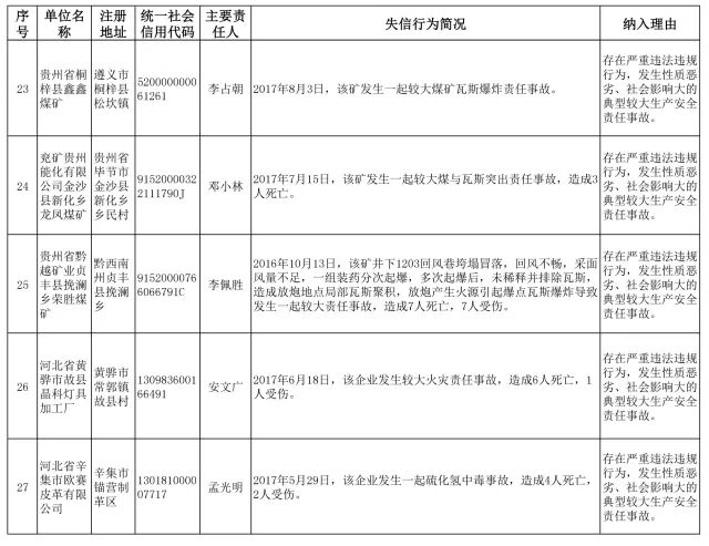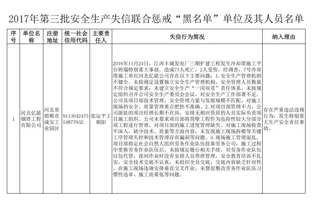 2017年第三批安全生产失信联合惩戒“黑名单”单位及其人员名单