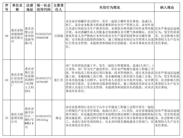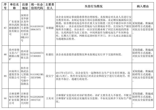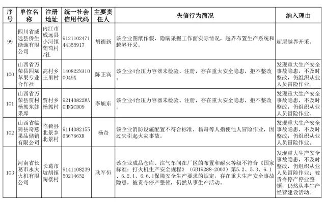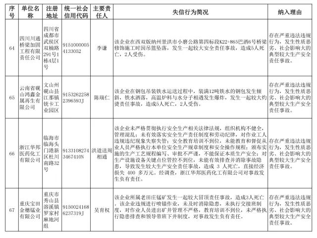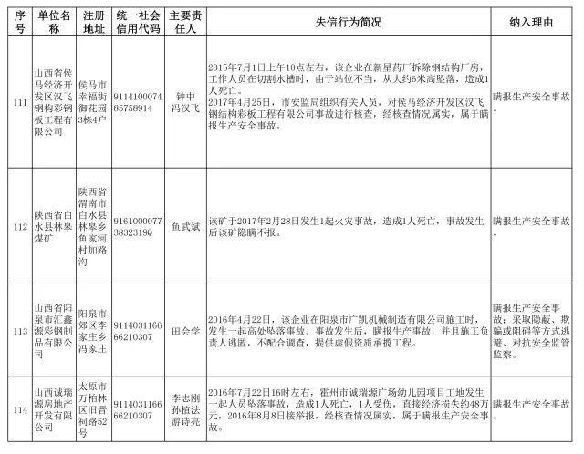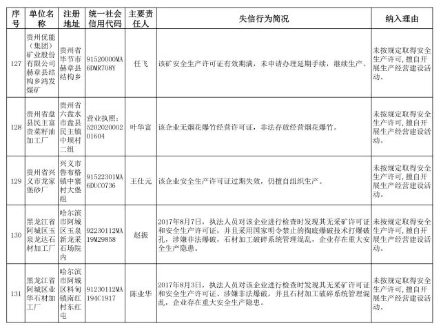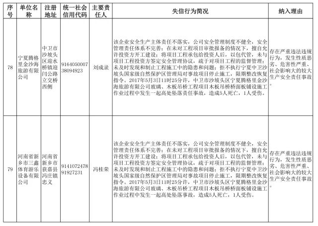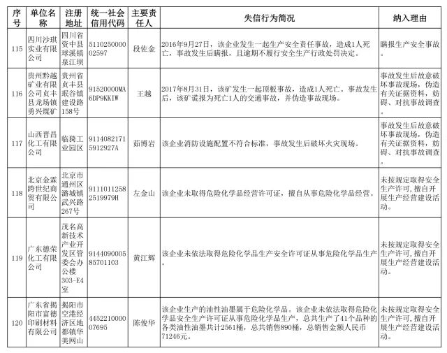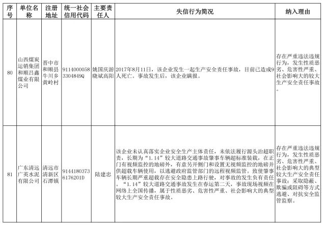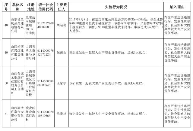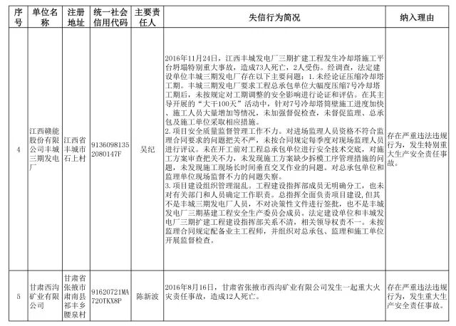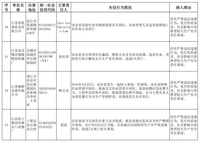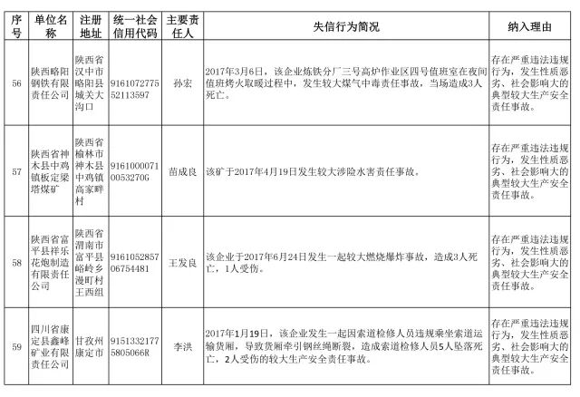 2017年第三批安全生产失信联合惩戒“黑名单”单位及其人员名单